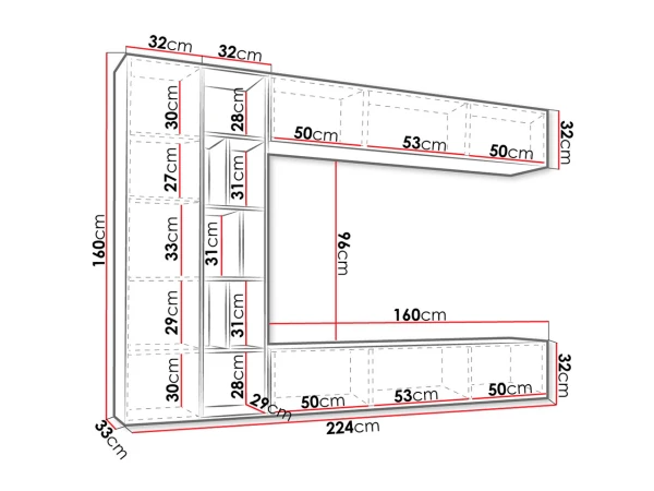 Mobilier de perete pentru living, PAL 18mm, Alb si Stejar.
